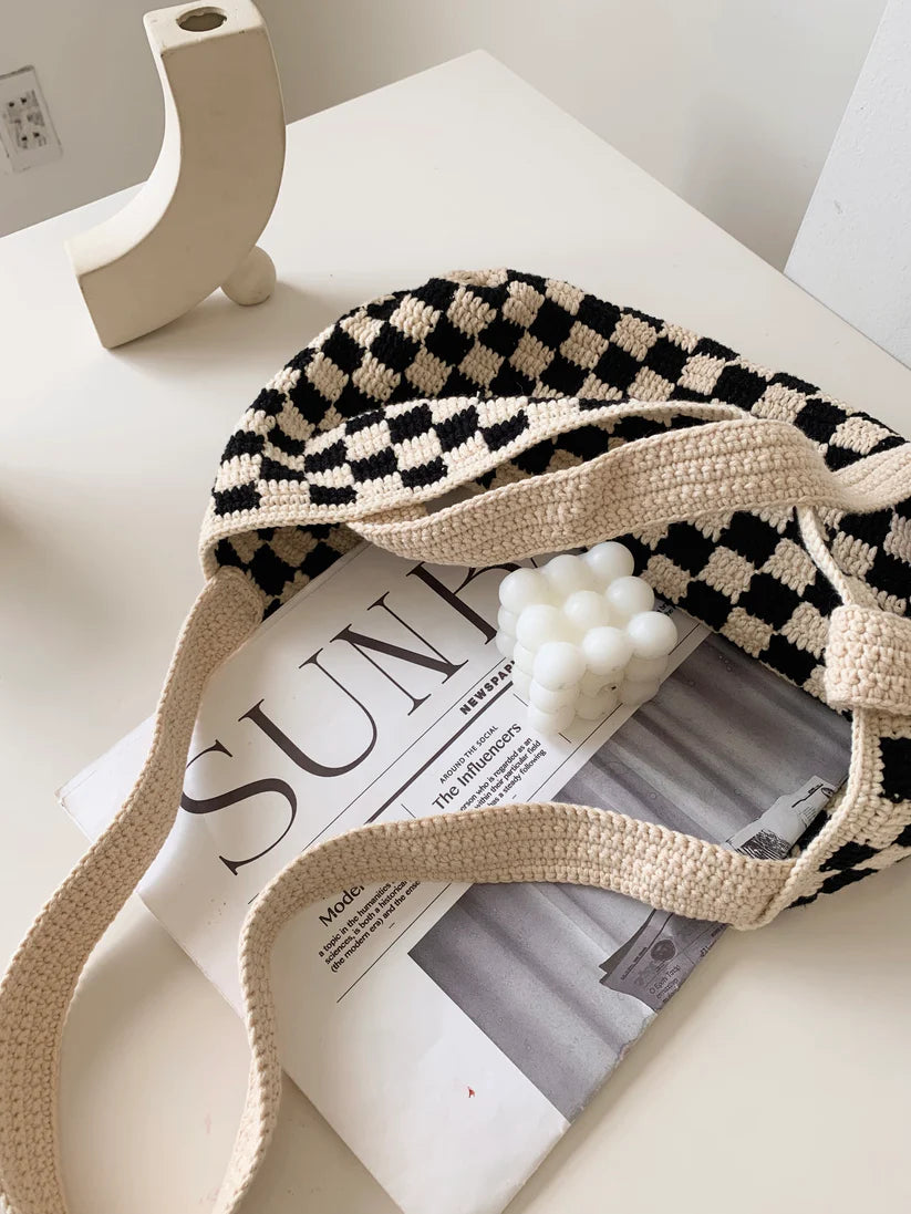 Carry your essentials in style with the Milano Muse Slouchy Checkered Tote. Milan is one of the most popular fashion capitals in the world! Nothing says Milan Chic like our classic and versatile tote. It works for busy city life, daily walks to the market or pack it full of beach essentials and you have an easy to pack vacation bag. For a touch of glamour, each tote is accompanied with our custom Evil Eye pin of your choice, serving as a reminder to be kind and to relish in life's simple pleasures.
