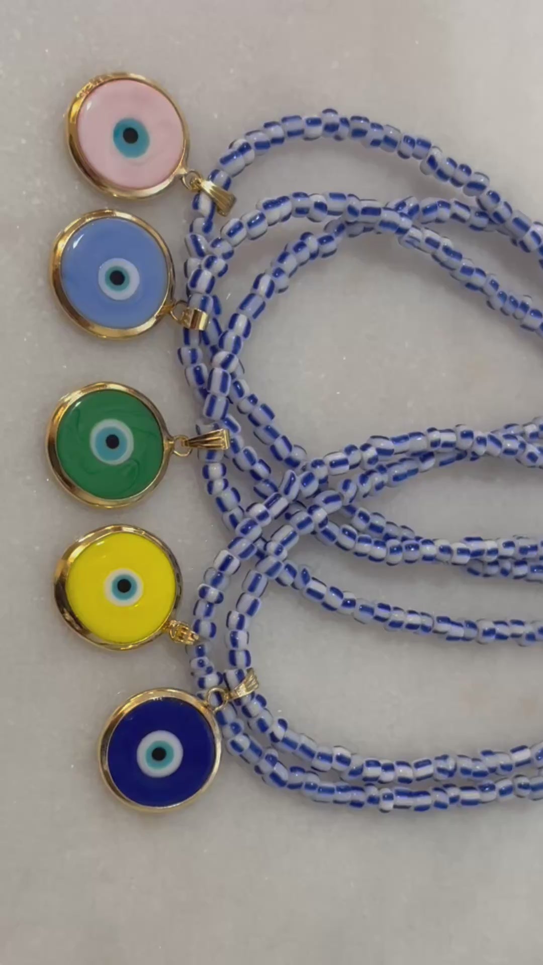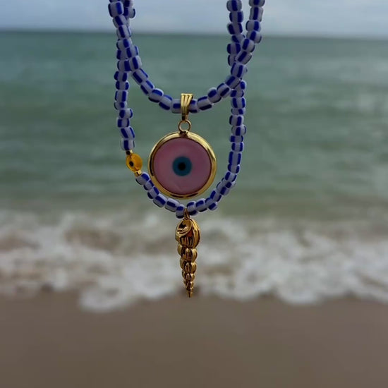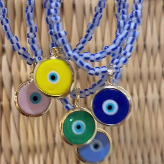 Handcrafted in beautiful Greece, our glass evil eye necklaces are a modern take on ancient protection. Each one-of-a-kind amulet symbolizes personal growth, harmony, and healing energy. It’s believed to protect against negativity while attracting balance and abundance into your life. Whether worn alone or layered, this authentic amulet adds protection and colour to your unique personal style.